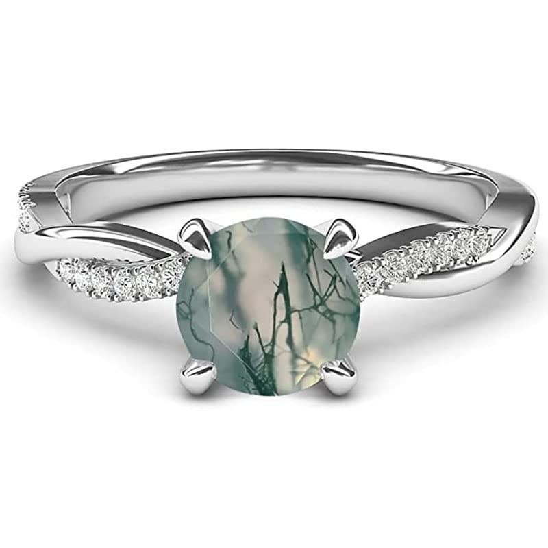 Luyona Natural Moss Agate Ring 925 Sterling Silver Moss Agate Engagement Ring Promise Wedding Ring Jewelry Gift for Women
