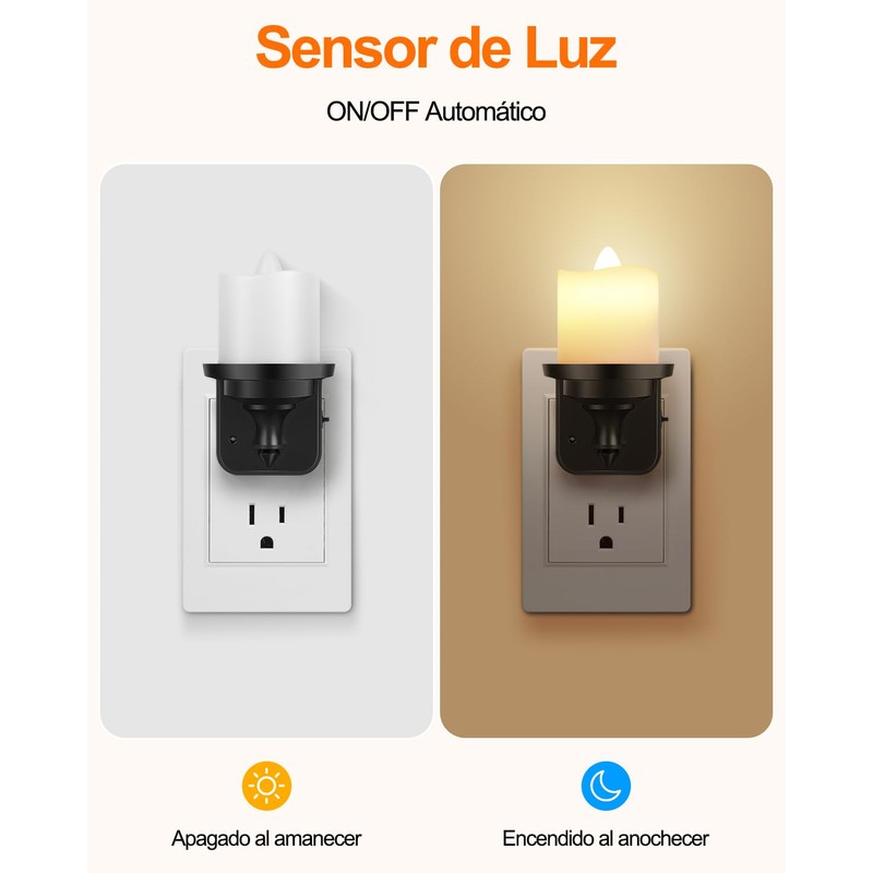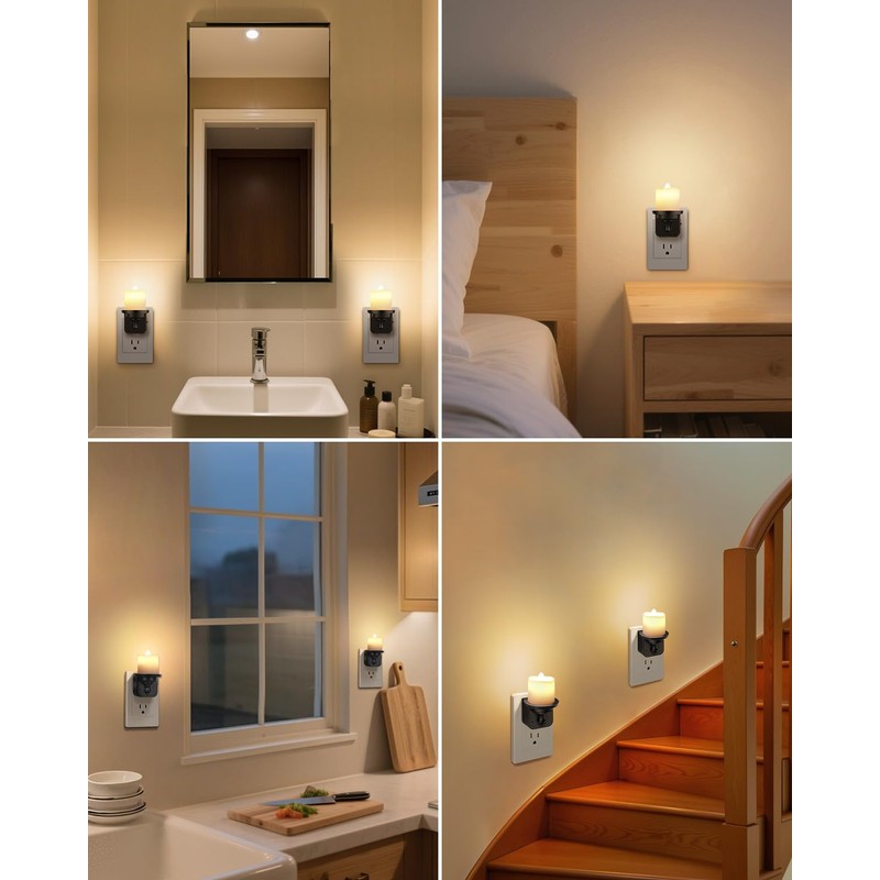 - 【Diseño en Forma de Vela】 La LED luz de noche tiene una forma realista de vela y una apariencia elegante y sofisticada. No solo es una práctica herramienta de iluminación nocturna, sino también una exquisita decoración que se integra perfectamente con diversos estilos de decoración para crear un ambiente cálido y confortable.