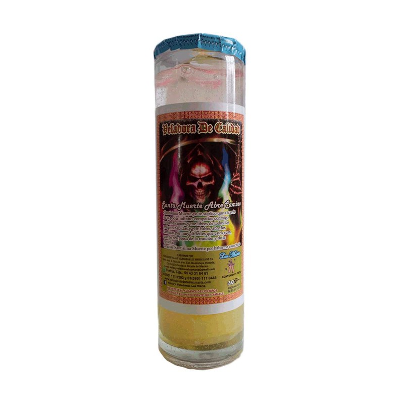 Luz María-VS-100 Veladora Gel Santa Muerte "Abre camino" (preparada, efectiva)