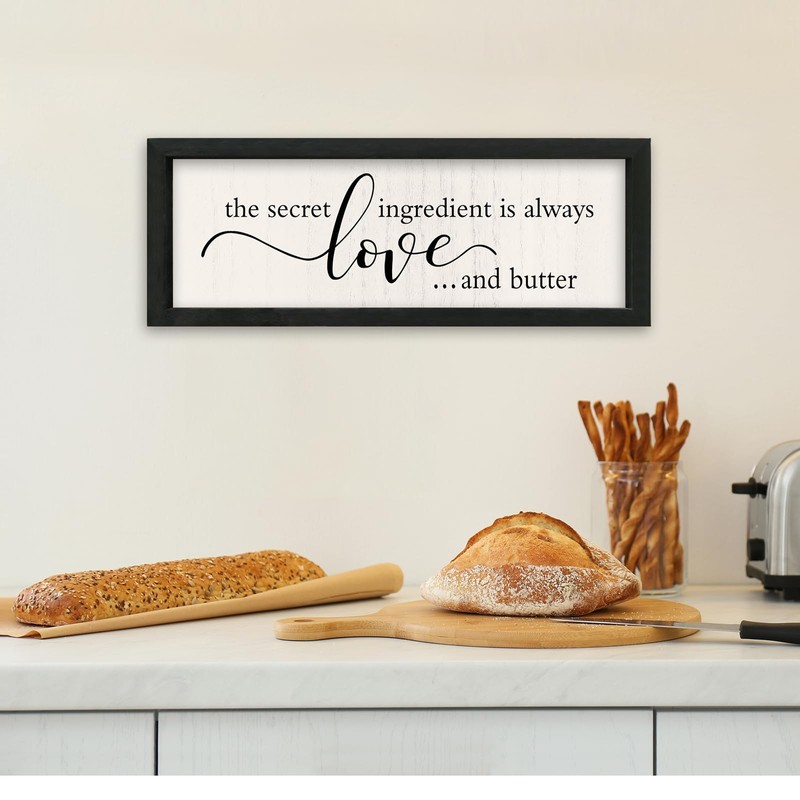 LuZhiQiang The Secret Ingredient Is Always Love and Butter Wall Decor 16"×6" Kitchen Dining Room Sign Wooden Framed Wall Hanging Art (Black)
