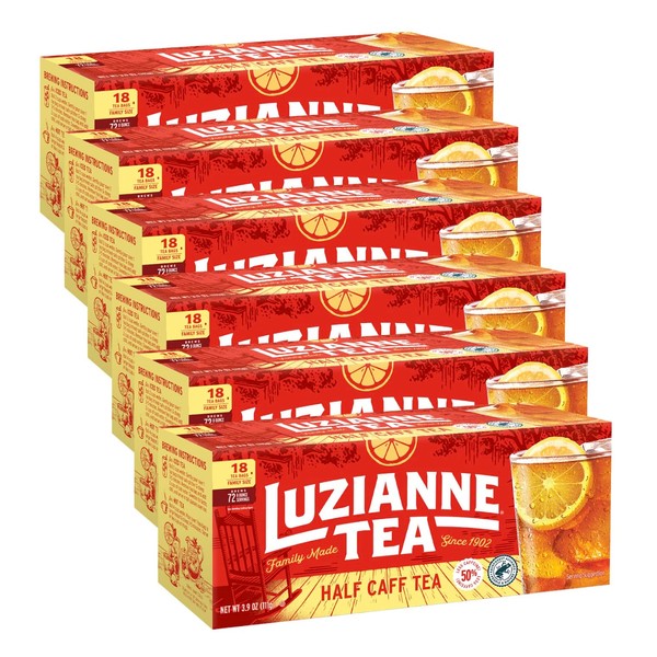 Luzianne Unsweetened Half-Caff Iced Tea Bags, Family Size, 18ct Box (Pack of 6)