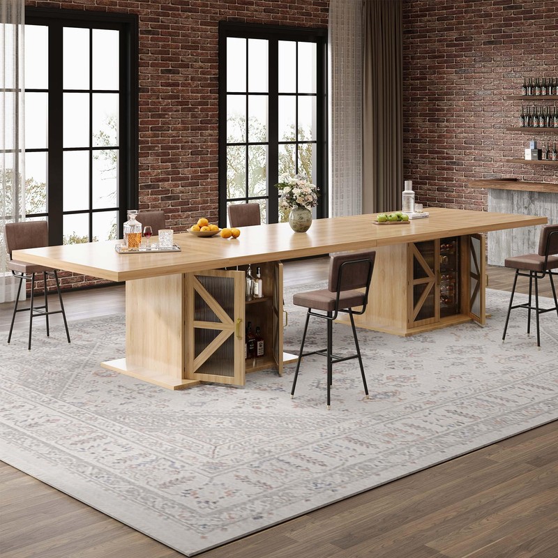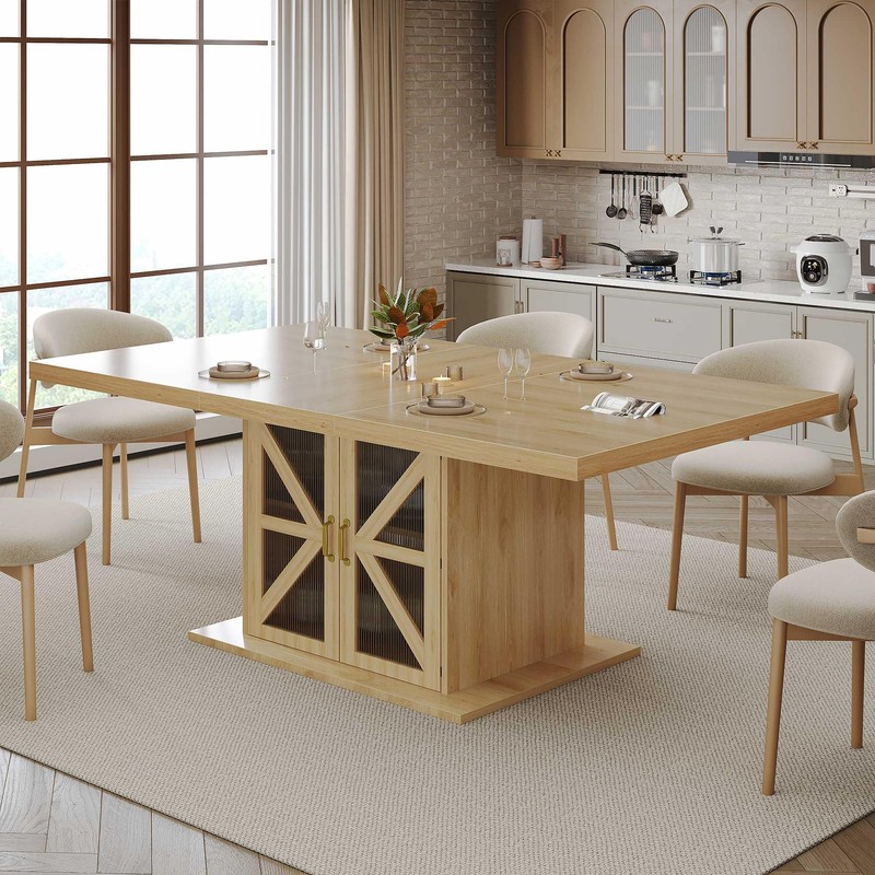This versatile piece works not only as a dining table but also as a kitchen storage solution or entertaining hub. Its farmhouse charm and modern features make it suitable for multiple living spaces and home styles.