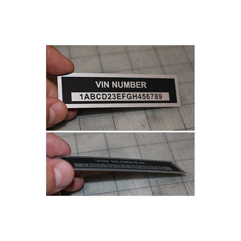 High quality laser engraved VIN aluminum plate. Whether you're restoring a car or you need to change your damaged / lost ID plate. This aluminum plate is specially designed to complete all you needs! THIS HIGH QUALITY TAG IS LASER ENGRAVED TO OFFER YOU A PERMANENT, DURABLE AND LEGIBLE PLATE COMPLIANT WITH ALL DOT/DMV REGULATIONS. VIN tag is mandatory on every vehicle for registration purposes. This plate is made from silver .025 anodized aluminum, a very Strong, UV resistant material.