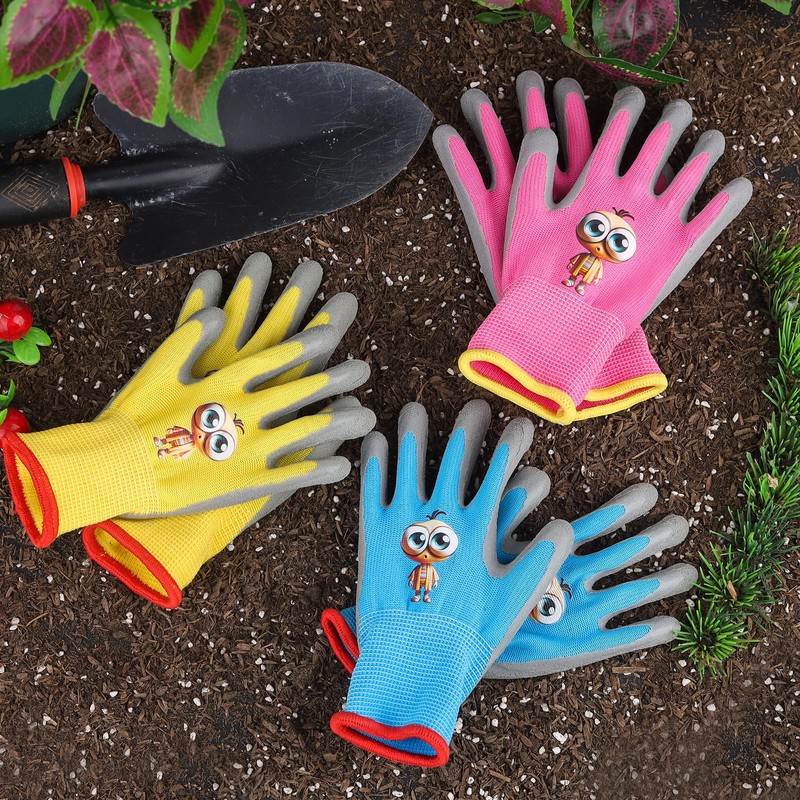 - Adorable Cartoon Design: Featuring charming cartoon characters, these small garden gloves make gardening fun and engaging for children. The vibrant blue and yellow designs keep kids motivated and excited about their gardening tasks