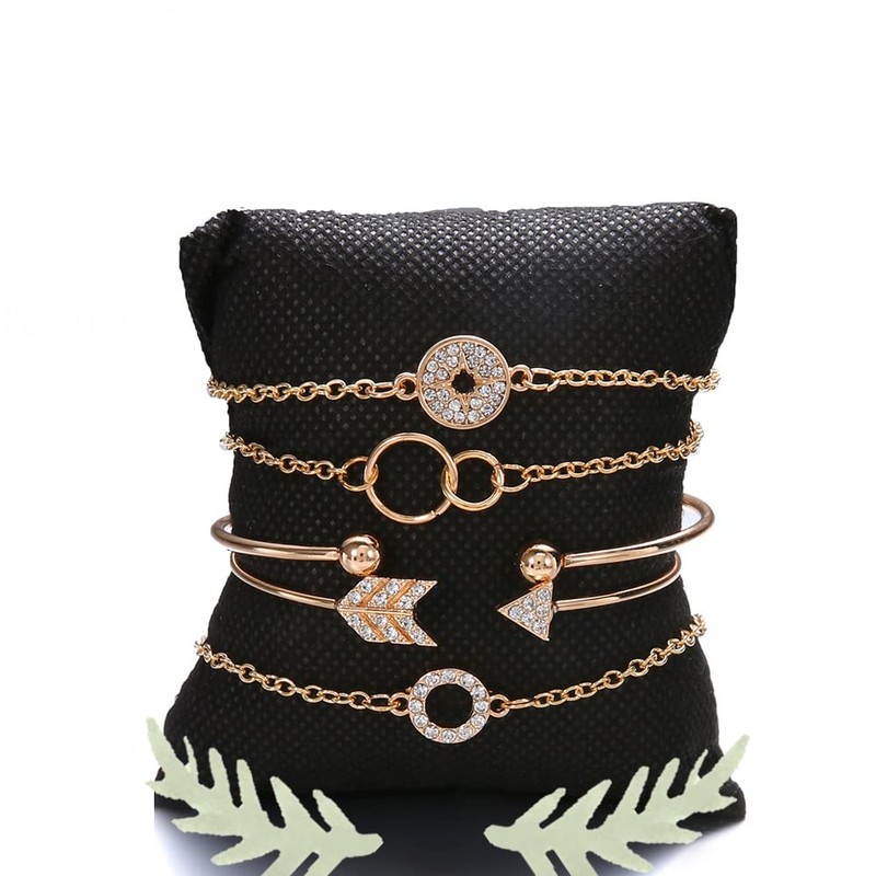 LVGPH 5pcs Simple Round Circle Rhinestone Knotted Open Geometric Chain Bracelet,Women Layered Bracelet Set Multiple Adjustable Open Cuff Bangles Hand Chain Gift for Women Men Him Her(Gold )