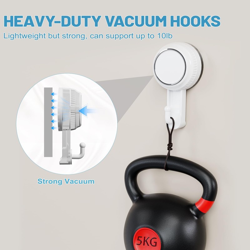 - [Heavy-Duty Grip] Featuring an ultra-sticky silicone base with vacuum technology, these suction cup hooks for shower securely absorb to glass, tiles, mirrors, and other smooth surfaces, holding up to 5kg/11lbs without slipping