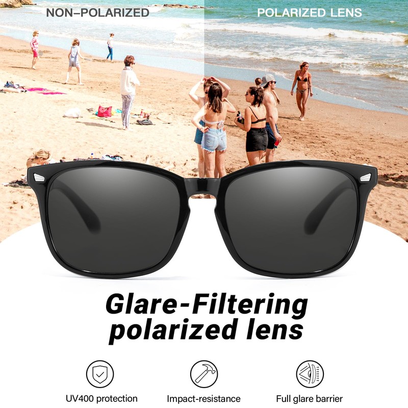- TAC Polarized Lens - The polarized lens filters out strong sunlight and harmful glare, ensuring true color is restored and your eyes are protected. Reflective glare from horizontal surfaces is significantly reduced, enhancing your visual experience.