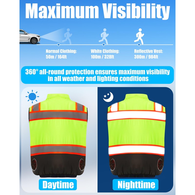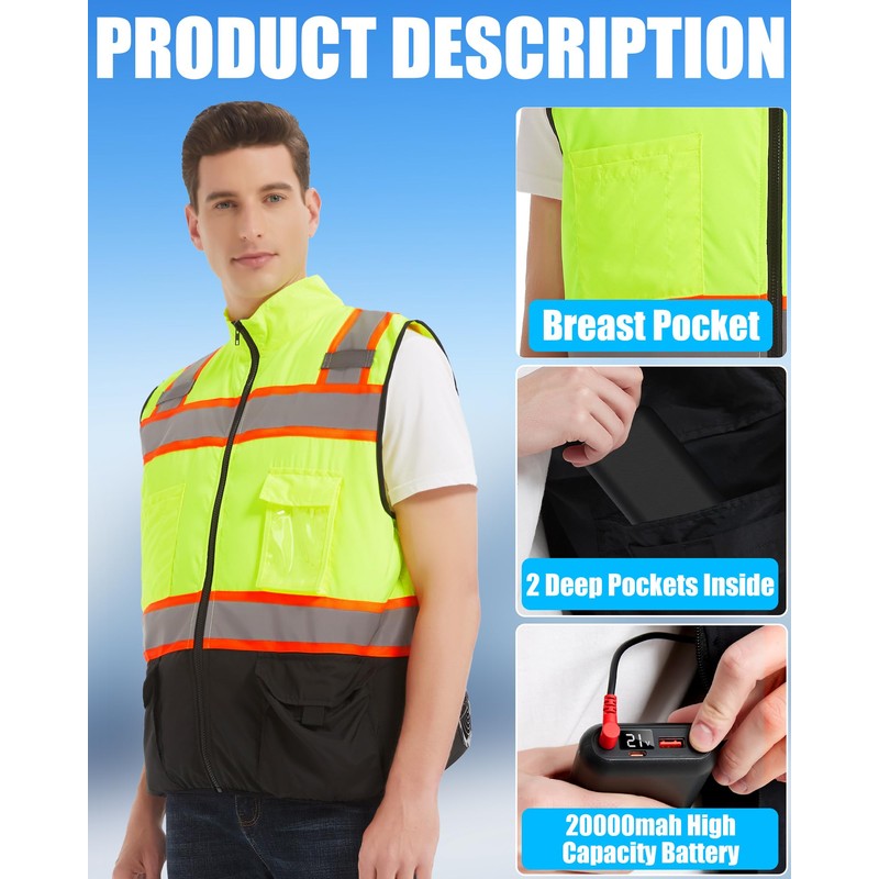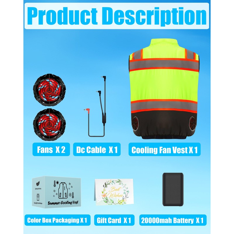 Lvkakmox Safety Cooling Vest Jacket with 2 Fans - Men and Women 21V Air Conditioner Reflective Vests, With 20000mAh Battery
