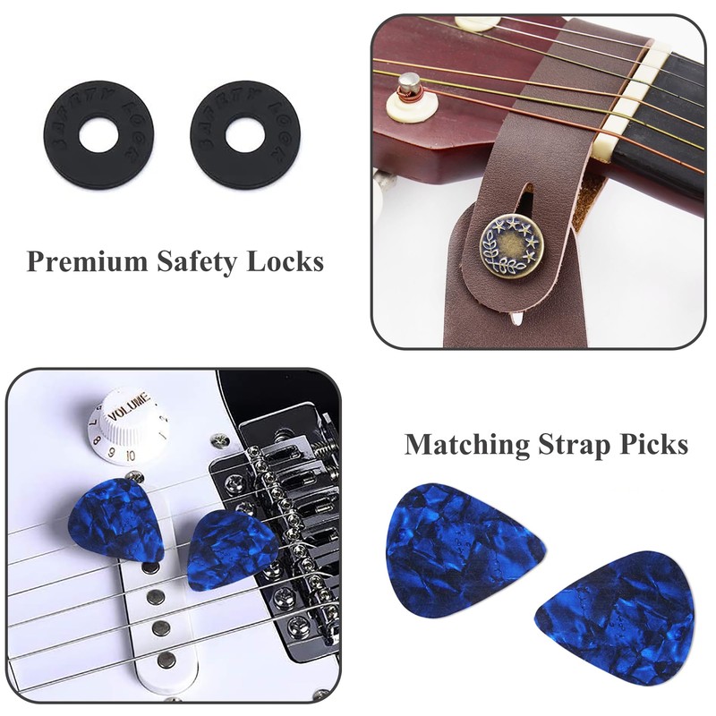 - ✅SAFE & SECURE: Lvkjafaz straps feature premium leather ends that are made to stand up to years of attaching and detaching from your guitar or bass. Rubber strap locks are included to conveniently and fully secure the strap to your guitar.