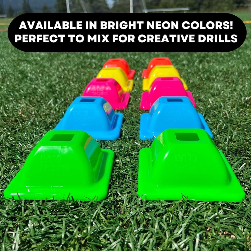 - Won't Crack, Slide or Fly: LVL10 sports cones are weather-resistant, durable, and sturdy. They are built to withstand harsh weather conditions and intense training sessions. They won’t crack in frigid temperatures, melt, or be easily blown away. Each 2" cone weighs 2oz, so you won't have to chase down flimsy soccer cones during rainy or windy days.