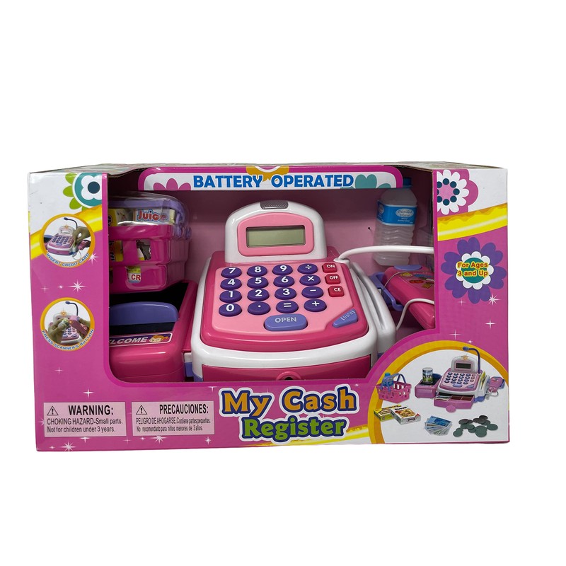 - Includes checkout Scanner, mock money, shopping basket, bar-codes, intercom, and weight scale