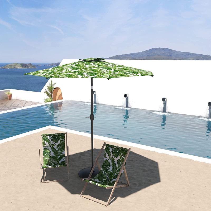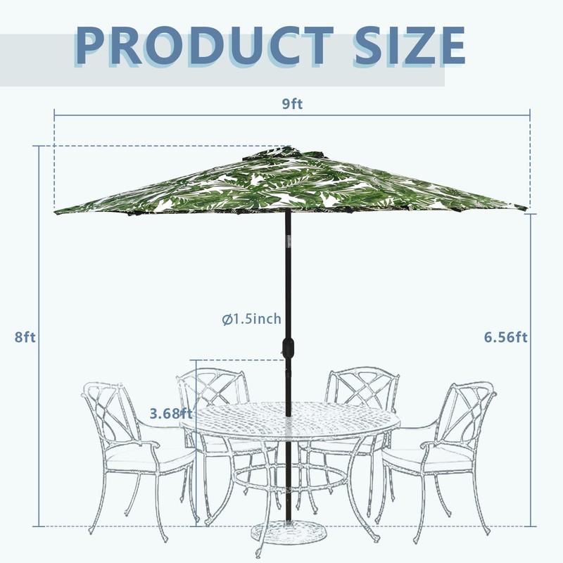 LVTXIII 9' Patio Umbrella Outdoor Printed Umbrella with Push Button Tilt and Crank for Table Market Garden Backyard Swimming Pool, 8 Ribs (Palm Green)