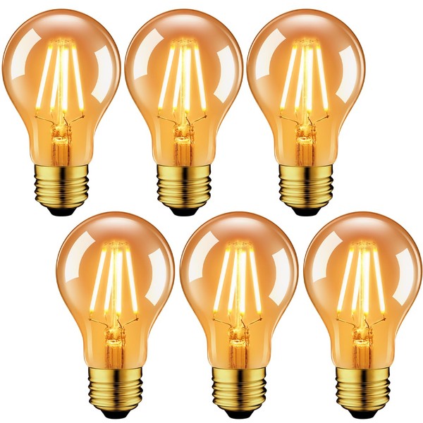 LVWIT LED Bulb, E26 Base, Filament Bulb, 60W Equivalent, 2500K, Brown, 720LM, Retro Bulb, A60 PSE, Non-Dimmer, 6 Pack