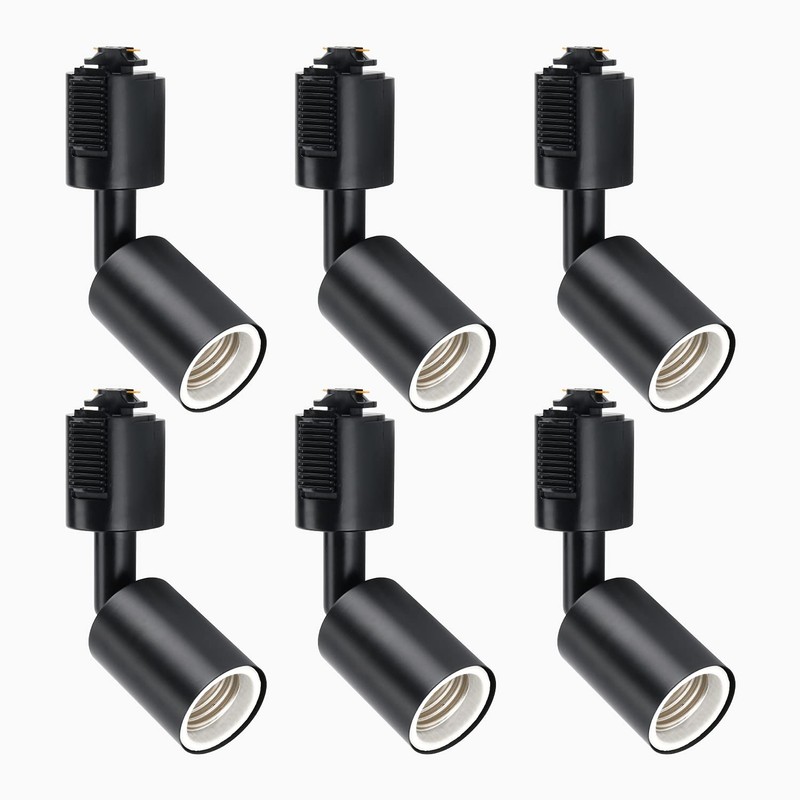 LVWIT Lighting Rail Spotlight E26 Base Socket Duct Rail Lighting Fixture Angle Adjustable Black 6 Pack