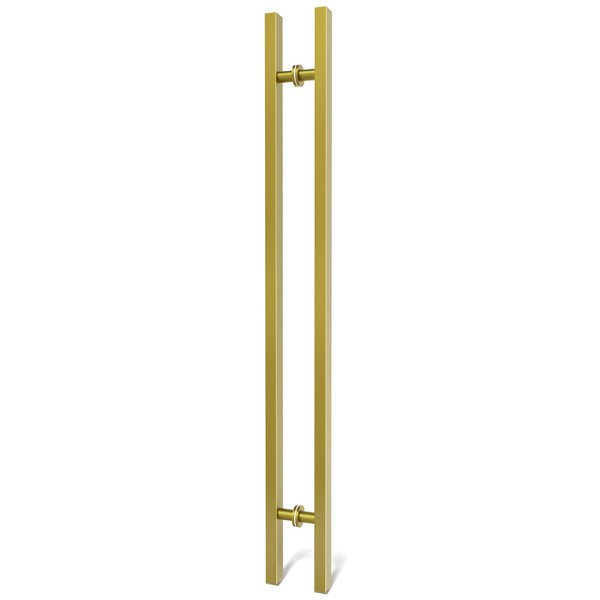 LVYIHAN Titanium Gold Square Barn Door Handles 12"/24"/36"/48"/59'', Pull Push Long French Door Handle Double Sided, Large Front Exterior Shower Door Pull Handles