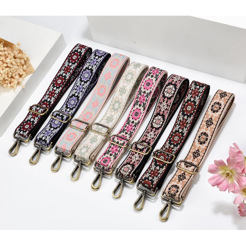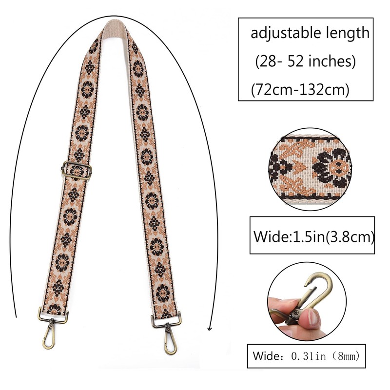 LVYOUME Adjustable Bag Straps Brushed Brass Hardware Retro Jacquard Embroidery Wide Straps for Canvas Crossbody Bags Messenger Bags Shoulder Bags