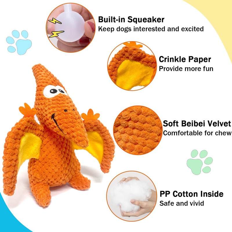 LWBMG Squeaky Dog Toys Plush Dog Toy with Crinkle Paper Dinosaur Dog Toy Stuffed Animals Chew Toy Plush Squeaky Dog Birthday Toys for Small Medium Large Dogs Orange