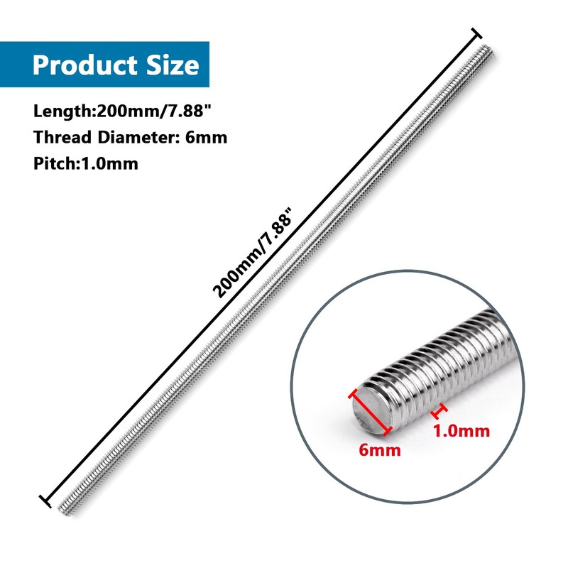 - 【Size】Thread Dia: 6mm; Thread Pitch: 1mm;Total Length: 200mm/7.88''.