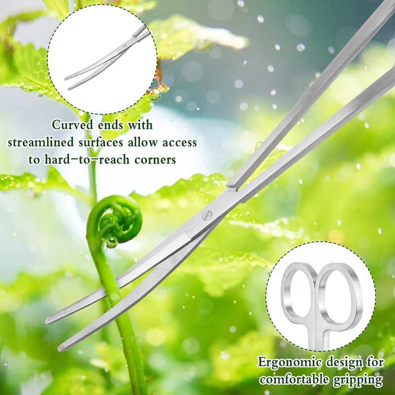 - Useful Stainless Steel Aquarium Tools: both the straight and curved aquarium tweezers have ribbed tips so you can hold things firmly and do not slip off easily. The ergonomic design fits comfortably in the hand and allows you to trim and maintain aquatic plants with ease and precision, allowing you to comfortably maintain a clean aquarium and beautiful water garden.