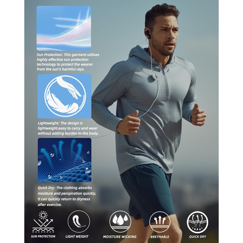 • Protect Your Skin: When you are outdoors, our men's athletic compression shirts can protect your arms from thorn bushes and thorny plants, as well as ward off the harmful rays of the sun.
