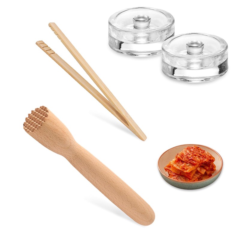 - Multifunctional set: fermentation set contains two fermentation weights with a diameter of 7 cm, a beech wood juicer and a V-shaped clip, it is a practical choice that covers the most important tools for the entire process of kimchi making without the need for additional purchases
