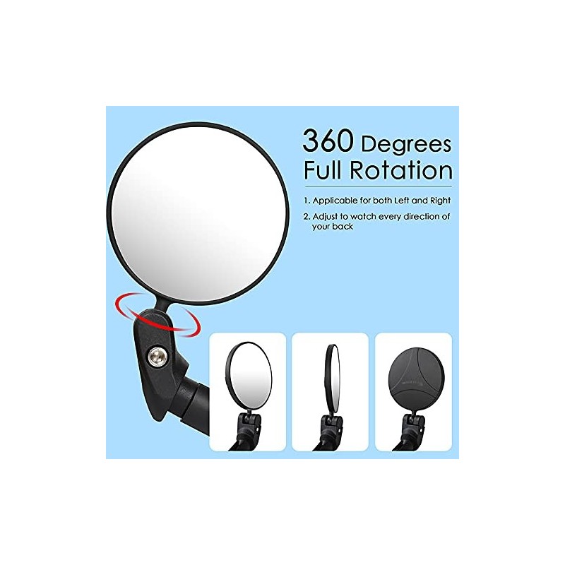 - 360 Degree RotationBase with 360 degrees full rotation and could adjust to any direction to help you watch every direction of your back and offers you a clear view to ensure safe riding.