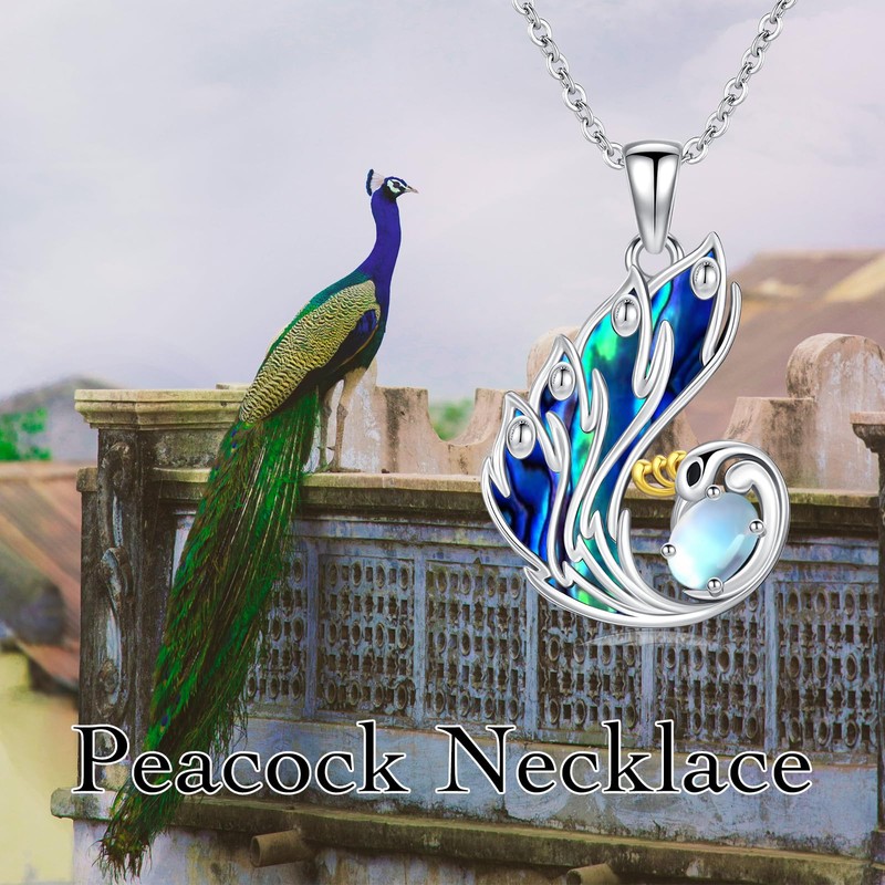 - 🦚DESIGN: The peacock symbolizes beauty, elegance and confidence, and the necklace features a peacock cradling a moonstone, which emits a mysterious phantom and a soft glow that echoes the peacock's magnificence perfectly. The peacock's tail is made of abalone shell, which is shiny and colorful, adding a unique sense of luxury and oceanic atmosphere to the whole peacock necklace.
