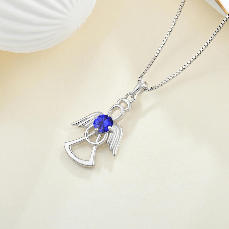 Lwsary Guardian Angel Necklace 925 Sterling Silver Angel Wings Necklace Sapphire Pendant September Birthstone Jewelry for Women