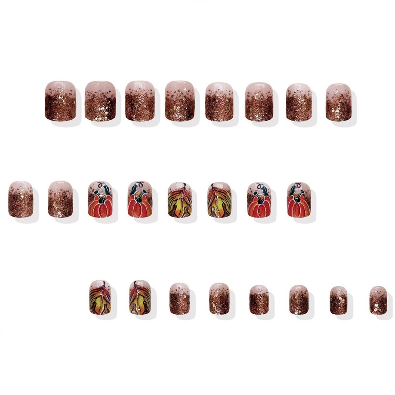 - Fall Manicure:24pcs Fall Thanksgiving press on nails +1pcs nail file +1pcs wooden stick + 24pcs jelly glue Stickers. 12 sizes of false nails are reusable and suitable for different sizes of nails