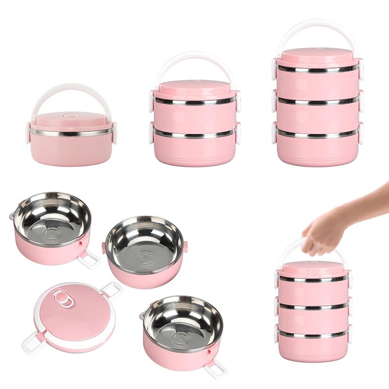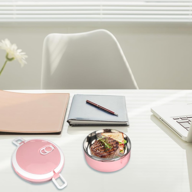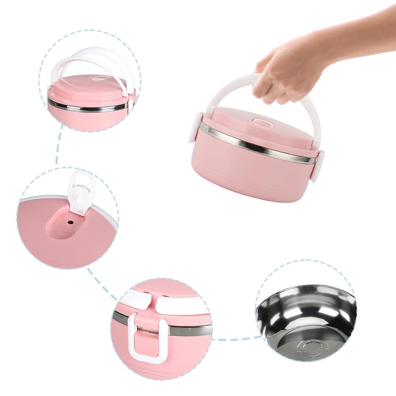 Lwuey Lunch-Boxten, Thermobehälter Mit Griff Edelstahl Isolierter Bento-Box-Behälter Utensilien-Set Silikondichtungsring Auslaufsicherer Luftauslass Für Einfaches Öffnen Beim Essen(1 Layer-Rosa)