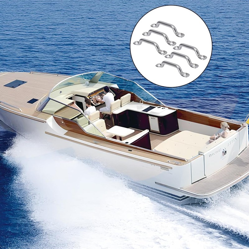 - Stainless Steel Material: The pad eye straps with anchors and pad eye straps for boats made of 316 stainless steel, which can use for long time. Once the straps are screwed, it is sturdy enough to hang heavy duty. Tying the boat to dock still outstanding stays in one place and strength to hold in a strong wind