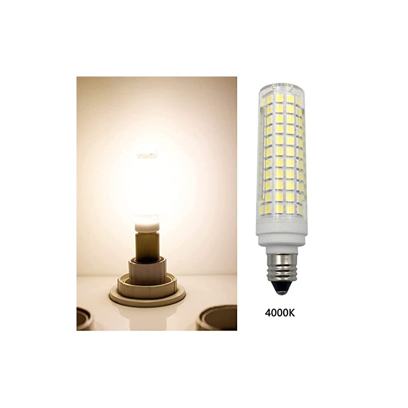 - E11 Mini Candelabra Bulb made of Ceramic and PC material with 136 pcs of 2835 SMD LED Chip,Ceramic housing helps heat dissipation quickly. 360° Beam Angle, Natural White 4000K, CRI 80+, Dimmable