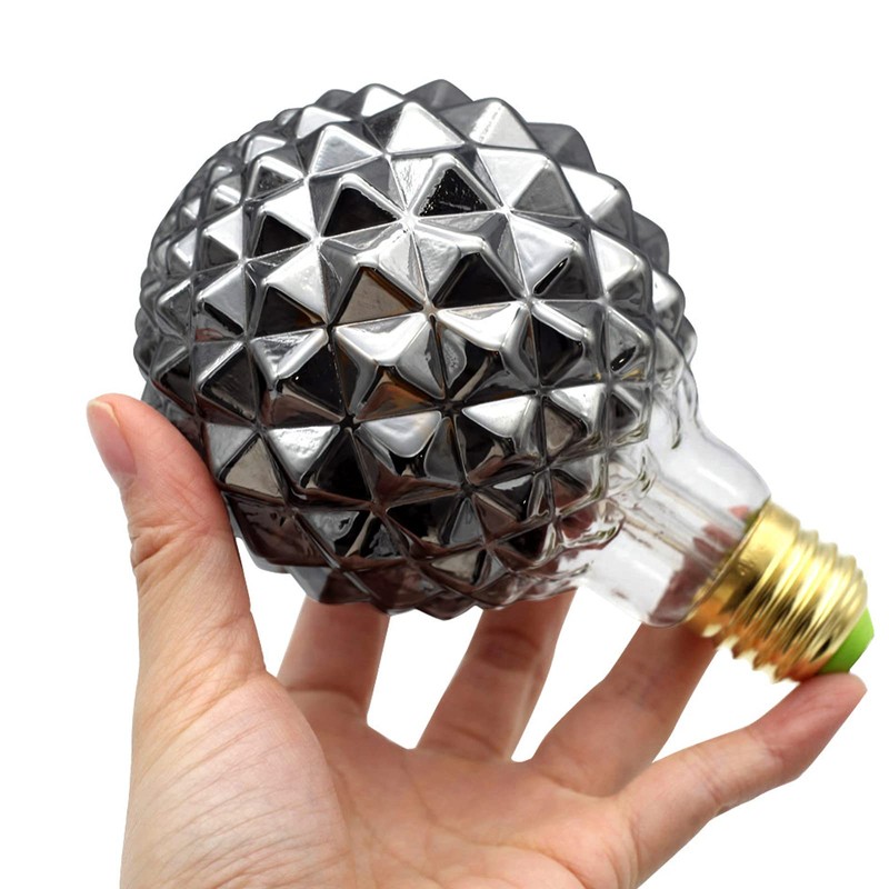 Lxcom Lighting G95/G30 Pineapple Decorative Edison Bulb 4W(40W Equivalent) Globe Light Bulbs Warm White 2700K E26 Medium Base Smoke Grey Glass Filament Bulbs for Table Lamp Wall Sconce, 2 Pack