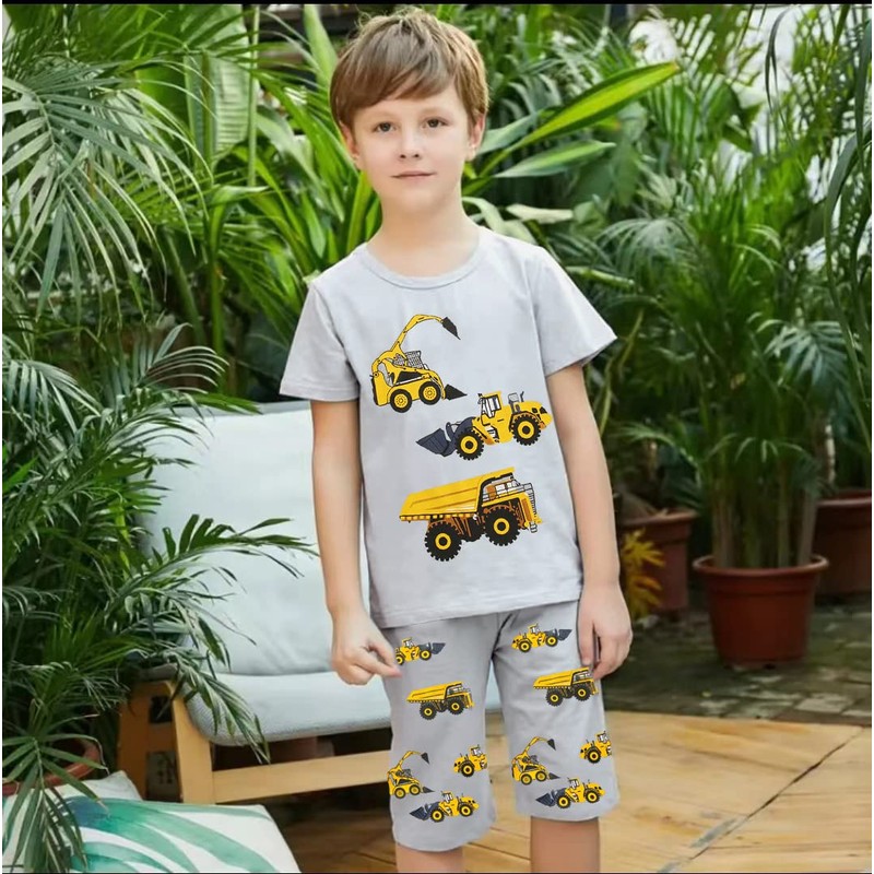 LXKA Boys Pyjamas Short Sets Kids Pjs Summer Toddler Boy 100% Cotton Dinosaur Digger Shark Sleepwear 2 Pieces Clothes Outfits 2-7 Years (7-8 Years, 2-Digger, 7_years)