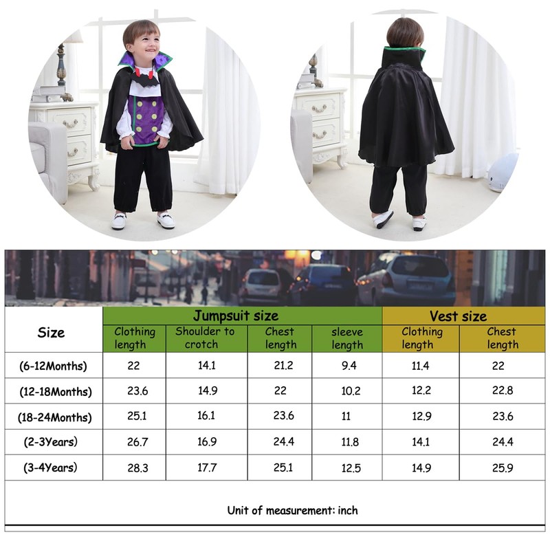 - Design - Cute baby vampire costume. Easy on/off for diaper changes.Suitable for Halloween, Trick or treat, Cosplay events, Photography, Stage performance
