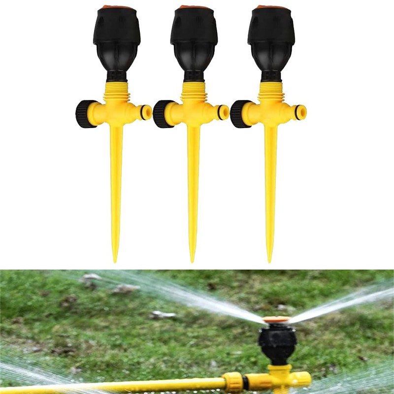 LXLM 360° Rotating Garden Lawn Sprinkler, Yellow, Rotary, 3PCS