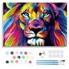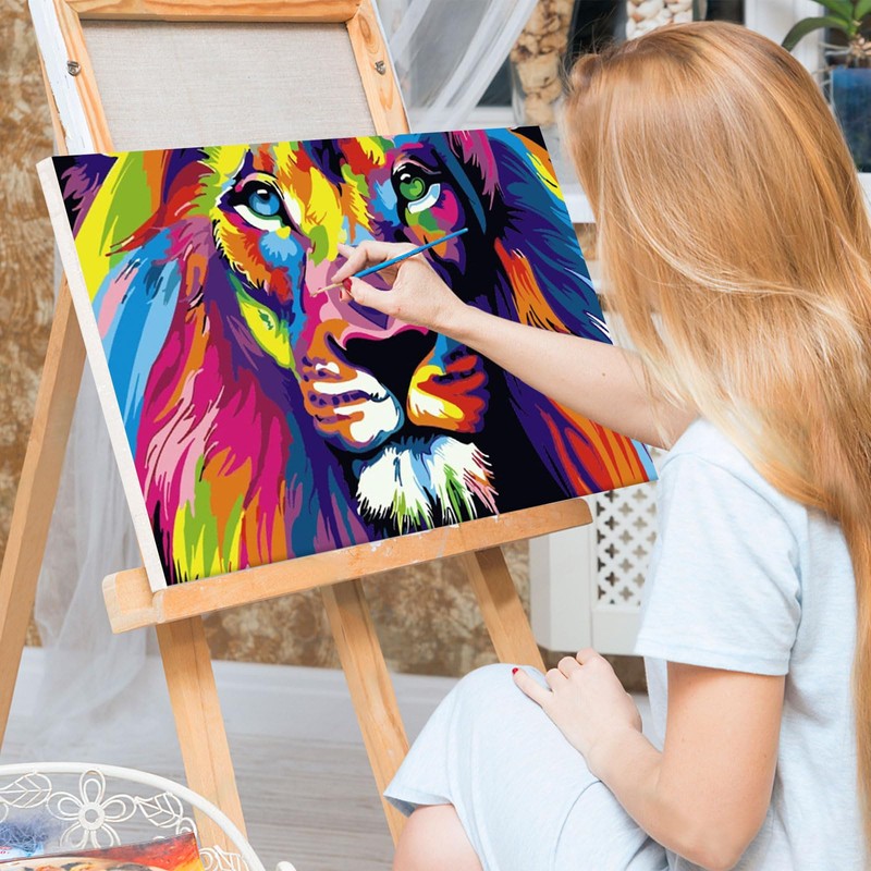 Lxmsja Colourful Lion Paint by Numbers Adults with Frame, Lion Paint by Numbers Children, DIY Set Adults with Brushes and Acrylic Paints, Hand Painted Oil Painting Canvas for Home Decor, 20 x 30 cm