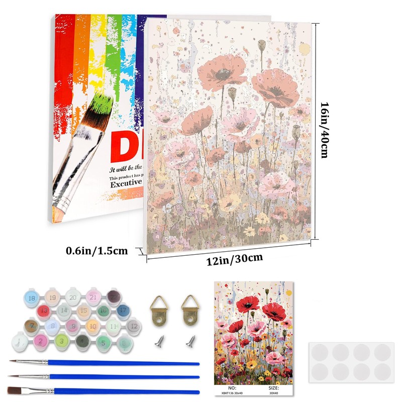 - Complete Tool Kit: The DIY paint by numbers kit for adults includes 3 different-size brushes, 1 pcs framed canvas, 1 set of matched acrylic paint colors, and hook nails. Open the package and you can start painting immediately