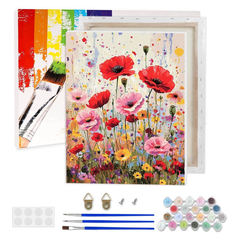 Lxmsja Red Poppies Paint by Numbers Kit for Adults, Meadow Acrylic Paint by Numbers for Adults Beginner, DIY Craft Supplies Oil Painting Kits for Home Wall Decor 12x16 inch (Framed)