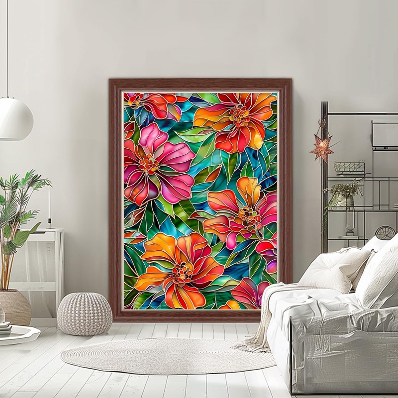 Lxmsja Stained Glass Flower Diamond Art Kits for Adults, Flowers DIY Full Drill Diamond Painting Kits for Beginners, 5D Gem Art Crafts for Adults, Home Wall Decor 12x16 inch