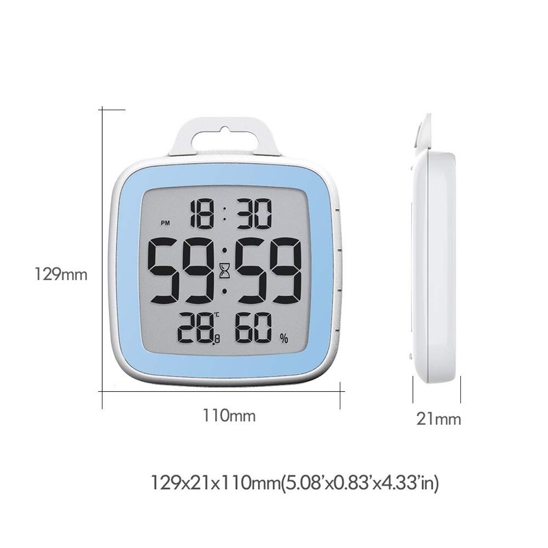 LXSZRPH Shower Clock Digital Kitchen Bathroom Countdown Clock Timer, Waterproof for Water Splashes, Temperature Humidity Display, Standing Wall Clock for Shower Cooking Study Makeup Blue