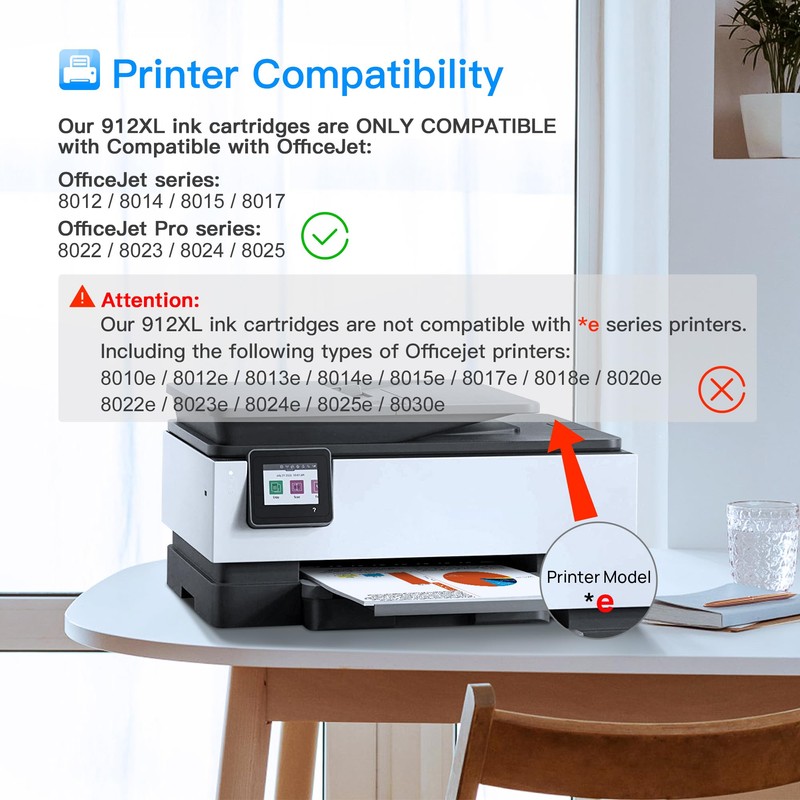 - LxTek 912XL Printer Cartridges Compatible with HP OfficeJet Pro 8020 8022 8023 8024 8025 Printers, for HP OfficeJet 8010 8012 8014 8015 8017 Printers