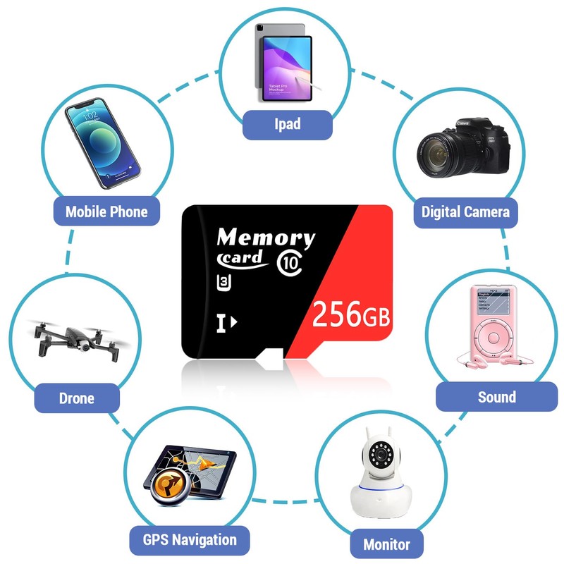 Lxuemlu Micro Card, 4K Video Recording for Action Camera, Drone, up to 100 MB/s UHS-I U3 A2 V30 Micro Memory Card -ZD256GB