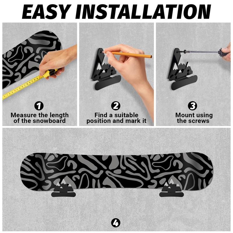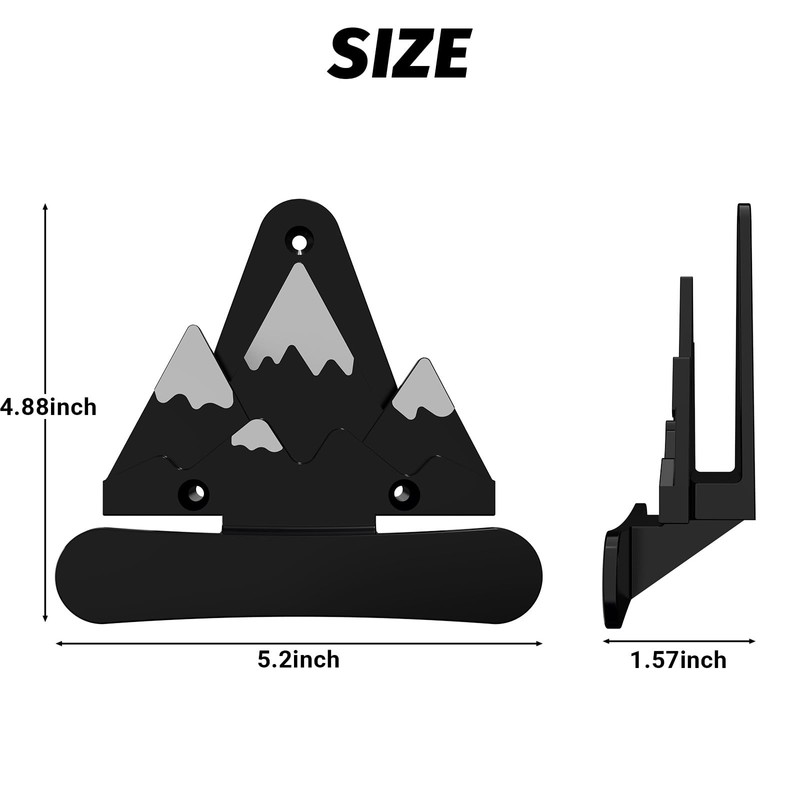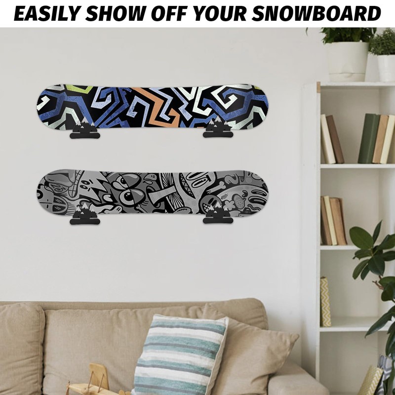 - Design: This snowboard wall mounts style is a snow mountain decoration design to hang a variety of snowboards and display them to achieve a decorative wall.Whether in your living room, bedroom, or garage, they serve as a statement piece, transforming your snowboard equipment from mere tools into a reflection of your lifestyle.