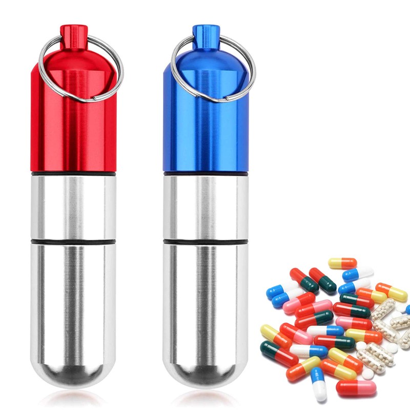 - [Multi-purpose]: Aluminum waterproof pill box can be widely used for storage pills, Vitamins, U-Disk, batteries, toothpick, matches, cigarette and so on. The bottle is safe and hygienic, non-toxic and tasteless, fit for holidays, parks, fishing, trips, bike, camping, outdoors, traveling and so on.