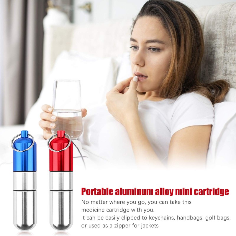 - [Multi-purpose]: Aluminum waterproof pill box can be widely used for storage pills, Vitamins, U-Disk, batteries, toothpick, matches, cigarette and so on. The bottle is safe and hygienic, non-toxic and tasteless, fit for holidays, parks, fishing, trips, bike, camping, outdoors, traveling and so on.