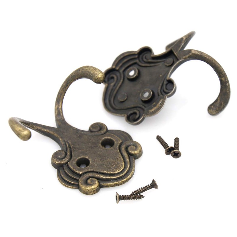 - 💗DESIGN: Vintage style dual-prong wall hook with two mounting holes. The hook base is embossed and the shape looks like an octopus. The antique brass color gives a vintage flavor to the hook.