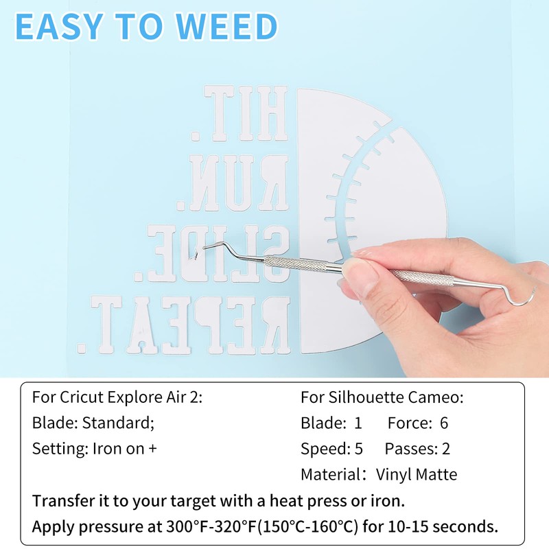 - HOT PEEL - Transfer it to your target with a heat press or iron. Apply pressure at 300℉-320℉(150℃-160℃) for 10-15 seconds. Don’t have to wait quite some time for it to cool before you peel it off, peeled off while still hot. Our HTV with 30.5cm wide is designed for most craft cutting macines, compatible with cricut, silhouette cameo, etc.