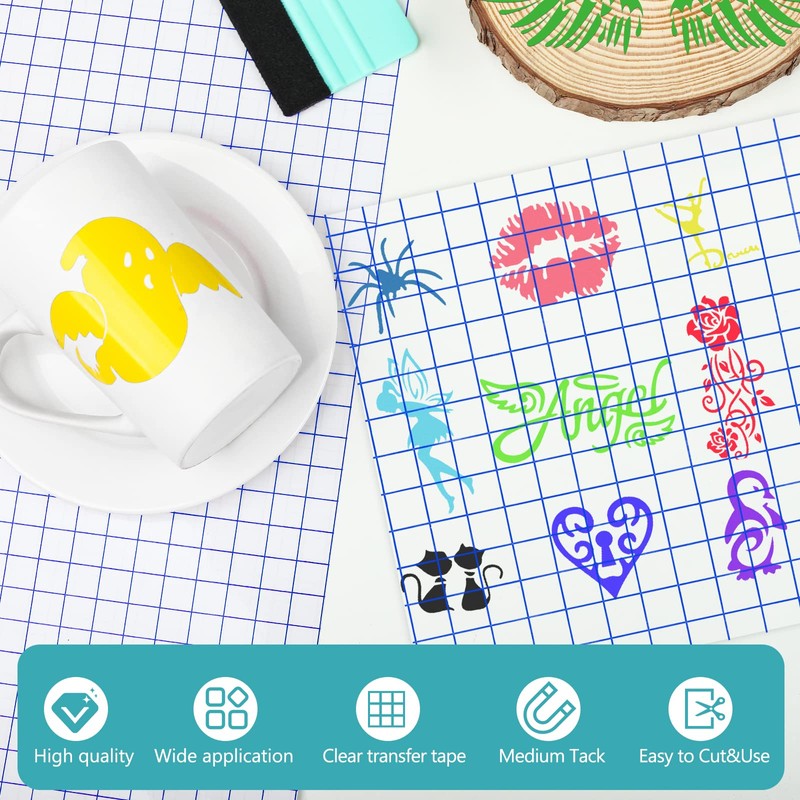 - Clear blue grid: useful grid on the transfer film so you can cut it at right angles. Easy to measure and cut the transfer film plotter for plotter film vinyl without waste. More precise and easier transfer of your designs.