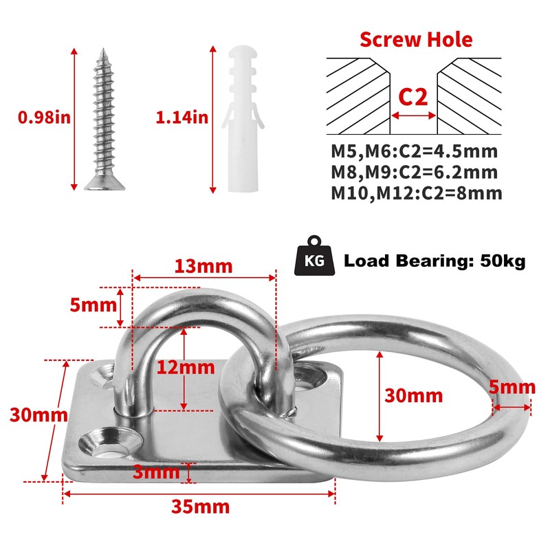 - Stainless steel eye plate: made of high-quality 304 stainless steel and welded firmly, the surface is polished and blank, wear-resistant, corrosion-resistant, rust-proof, reliable and very suitable for long-term outdoor use.